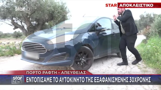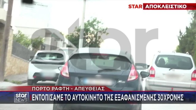 H κάμερα του Star και ο Βαγγέλης Γκούμας, κατά τη διάρκεια ρεπορτάζ στην περιοχή, εντόπισαν το μπλε Ford Fiesta της νεαρής κοπέλας στο Πόρτο Ράφτη, αφού στο missing alert που εκδοθεί, είχε δοθεί και ο αριθμός της πινακίδας.