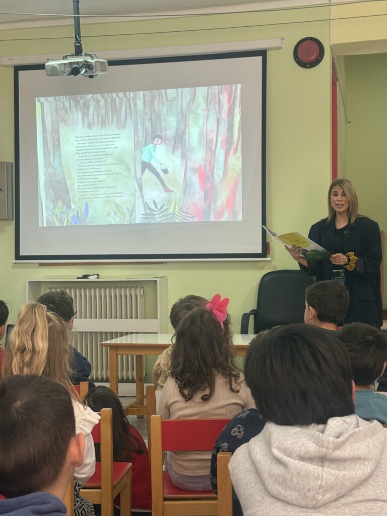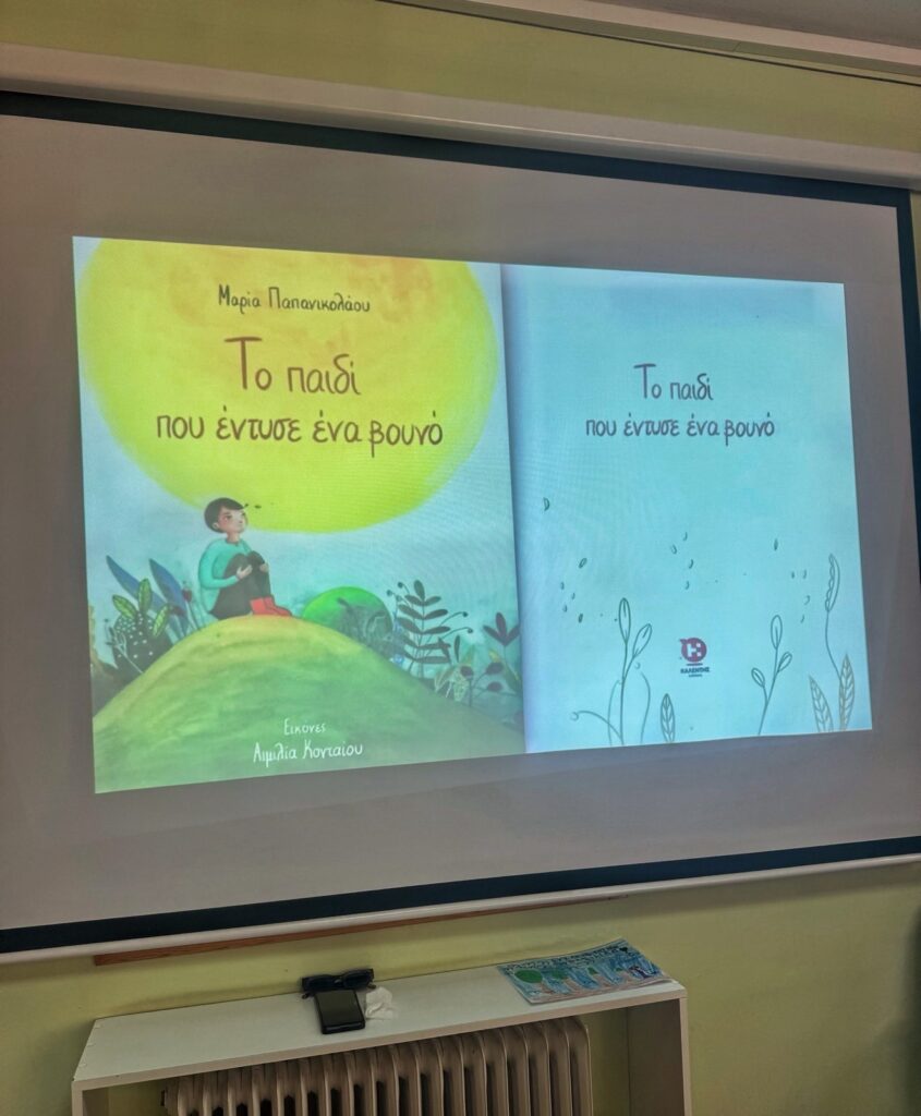 Στο πλαίσιο της δράσης, η νηπιαγωγός διάβασε στα παιδιά το παιδικό βιβλίο «Το παιδί που έντυσε ένα βουνό».