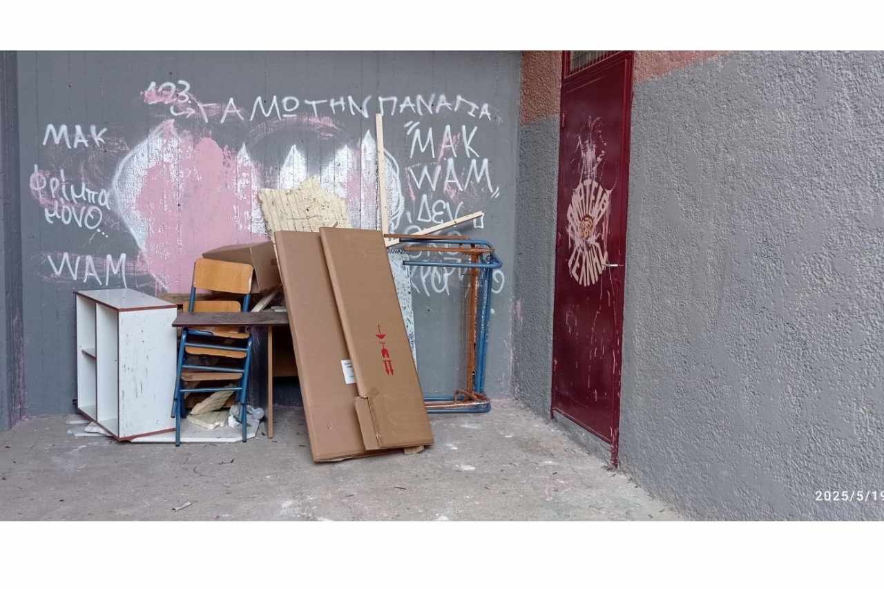 Το πρωί της Δευτέρας οι καθηγητές που πέρασαν πρώτοι από εκεί, είδαν τον εξωτερικό χώρο στα γραφεία της Πλατείας Τέχνης σε αυτή την κατάσταση. Άγνωστοι είχαν γράψει συνθήματα στον τοίχο και είχαν συγκεντρώσει άχρηστα υλικά σε έναν σωρό ακριβώς από κάτω. Ο τοίχος είχε βαφτεί από τα μέλη της Πλατείας Τέχνης μόλις τον προηγούμενο Σεπτέμβριο. Πηγή: hlioupolitimes.gr