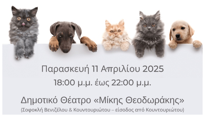 Με αφορμή την 4η Απριλίου, Παγκόσμια Ημέρα Αδέσποτων Ζώων και την Πανελλήνια Σχολική Ημέρα για τη Φιλοζωία, ο Δήμος Ηλιούπολης διοργανώνει Ημερίδα Ενημέρωσης και Ευαισθητοποίησης την Παρασκευή 11 Απριλίου 2025, από τις 18:00 έως τις 22:00, στο Δημοτικό Θέατρο «Μίκης Θεοδωράκης» (Σοφοκλή Βενιζέλου & Κουντουριώτου – είσοδος από Κουντουριώτου).