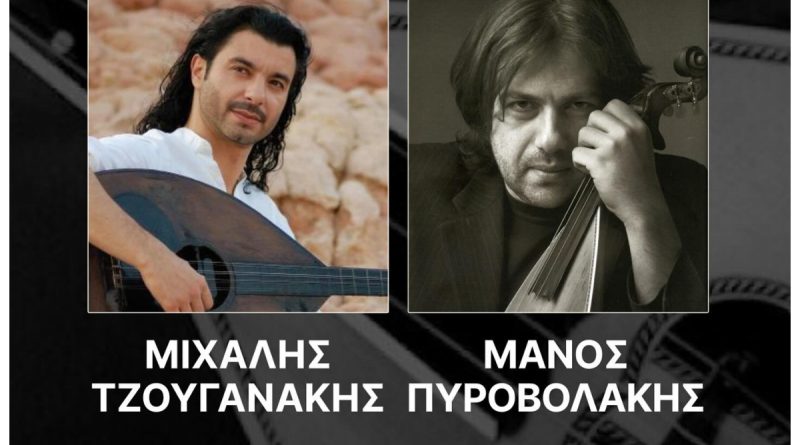 Ο Σύλλογος Κρητών Αγίου Δημητρίου σας προσκαλεί σε μια αξέχαστη βραδιά στον χώρο εκδηλώσεων του Δημοτικού Σταδίου Αγίου Δημητρίου, με τους μοναδικούς Μάνο Πυροβολάκη και Μιχάλη Τζουγανάκη.