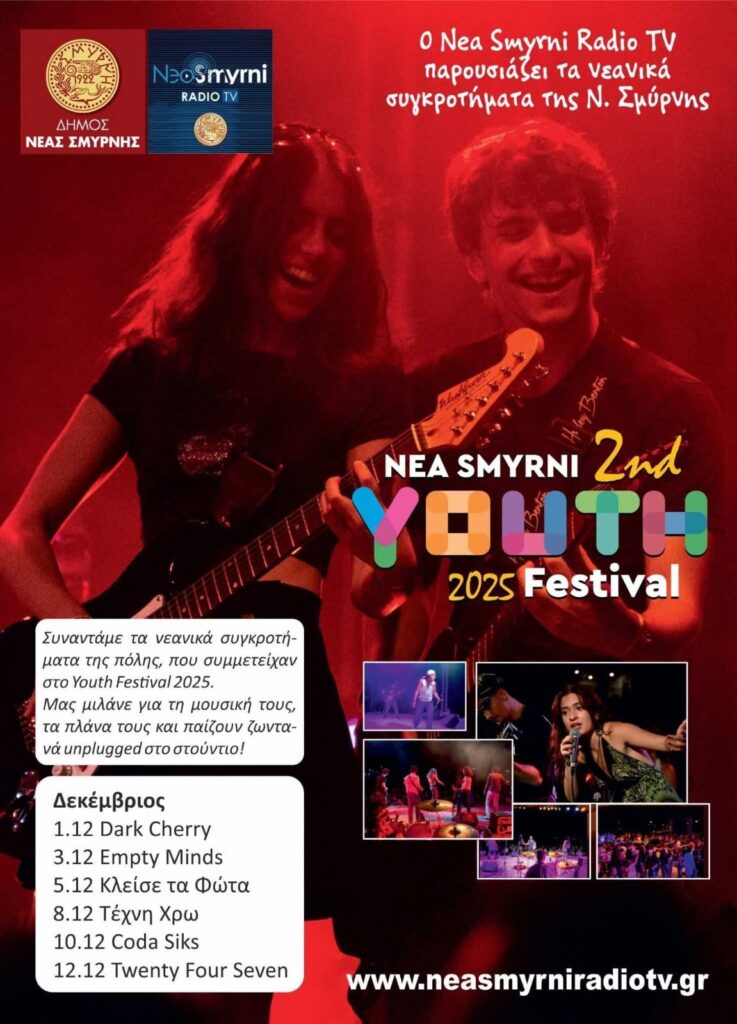 Το Δημοτικό ραδιόφωνο της Νέας Σμύρνης συνεχίζει και τον Δεκέμβριο να παρουσιάζει τα συγκροτήματα και τους νέους καλλιτέχνες που συμμετείχαν στο 2ο Youth Festival.