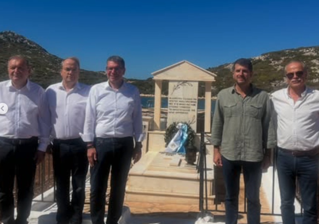 Μαζί με τους Δημάρχους Ιγνάτιο Καϊτεζίδη (Πυλαίας-Χορτιάτη και Πρόεδρο ΠΕΔ Κεντρικής Μακεδονίας), Γιάννη Μαλανδράκη (Πλατανιά), Βασίλη Ξυπολυτά (Κηφισιά) και τον Γενικό Γραμματέα του Υπουργείου Ψηφιακής Διακυβέρνησης Δημοσθένη Αναγνωστόπουλο, ο κ. Κωνσταντέλλος απέτισε φόρο τιμής στον τάφο της θρυλικής «κυράς της Ρω», της γυναίκας που για τέσσερις δεκαετίες ύψωνε καθημερινά την ελληνική σημαία απέναντι από τις τουρκικές ακτές.