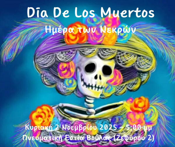 Ο Δήμος Βάρης Βούλας Βουλιαγμένης, σε συνεργασία με την εικαστικό Αρλίνα Κοτσιφάκη Παλαμήδη, διοργανώνει μια ξεχωριστή πολιτιστική εκδήλωση αφιερωμένη στη μεξικανική γιορτή «Día de los Muertos» (Ημέρα των Νεκρών), την Κυριακή 2 Νοεμβρίου 2025, στην Πνευματική Εστία Βούλας, στις 17:00.