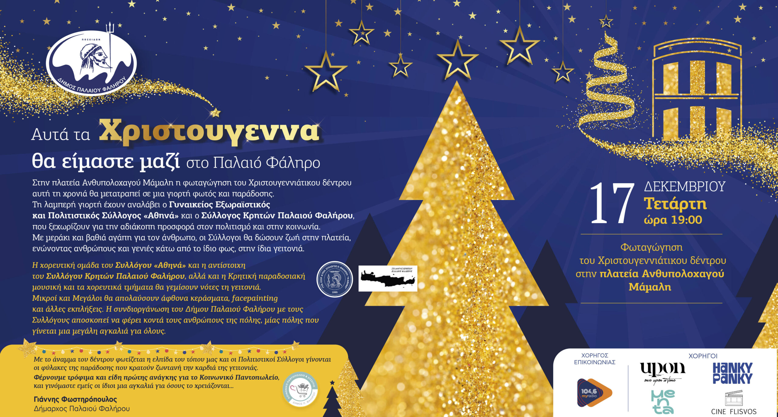 «Με το άναμμα του δέντρου φωτίζεται η ελπίδα του τόπου μας και οι Πολιτιστικοί Σύλλογοι γίνονται οι φύλακες της παράδοσης που κρατούν ζωντανή την καρδιά της γειτονιάς. Φέρνουμε τρόφιμα και είδη πρώτης ανάγκης για το Κοινωνικό Παντοπωλείο και γινόμαστε εμείς οι ίδιοι μία αγκαλιά για όσους το χρειάζονται…».