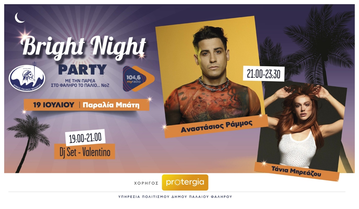Tο Σάββατο 19 Ιουλίου στην παραλία του Μπάτη, δίπλα στο κύμα, ο Δήμος Παλαιού Φαλήρου, διοργανώνει το Bright Night Party.