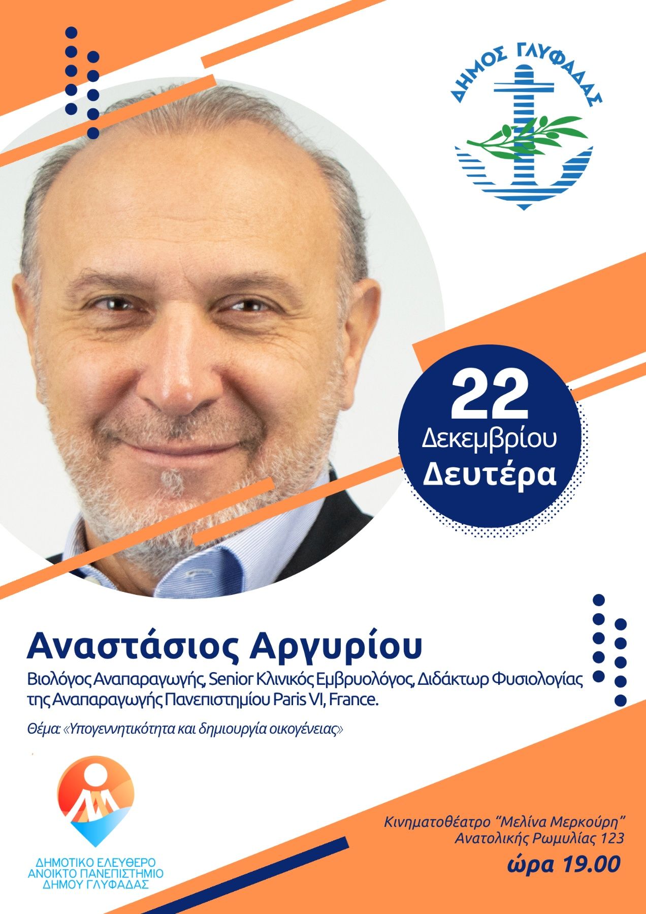 Η τελευταία διάλεξη της ημερολογιακής χρονιάς, στο πλαίσιο του χειμερινού εξαμήνου του ΔΕΑΠ Γλυφάδας, έχει προγραμματιστεί για την προσεχή Δευτέρα, 22 Δεκεμβρίου, στις 7:00 το απόγευμα και παρουσιάζει εξαιρετικό ενδιαφέρον, καθώς ο Δρ. Αναστάσιος Αργυρίου, ειδικός στην υποβοηθούμενη αναπαραγωγή, θα μιλήσει με θέμα: «Υπογεννητικότητα και δημιουργία οικογένειας».