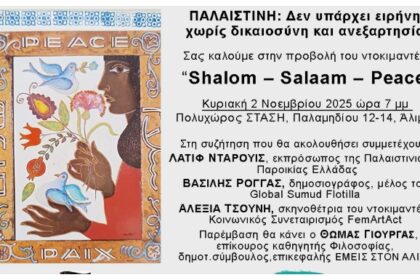 Η ΣΤΑΣΗ ΣΤΟ ΚΑΛΑΜΑΚΙ σας καλεί στην εκδήλωση για την Παλαιστίνη που διοργανώνει την Κυριακή 2 Νοεμβρίου 2025, ώρα 7 μμ στον Πολυχώρο της, Παλαμηδίου 12-16, στον Άλιμο. Θα προβληθεί το πολυβραβευ...