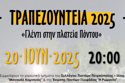 Με ένα μεγάλο γλέντι στην πλατεία Πόντου θα γιορτάσει και φέτος τα «Τραπεζούντεια» η Ένωση Ποντίων Γλυφάδας «Η Ρωμανία», σε συνδιοργάνωση με τον Δήμο Γλυφάδας. Η καθιερωμένη γιορτή ποντιακής και δημοτ...