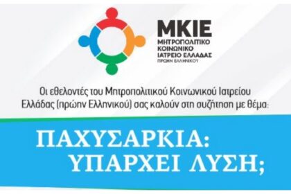 Οι εθελοντές του Μητροπολιτικού Κοινωνικού Ιατρείου Ελλάδας (πρώην Ελληνικού) σας καλούν στη συζήτηση με θέμα: “Παχυσαρκία: Υπάρχει λύση;” Κυριακή 4 Μαΐου 2025 στις 10:30 π.μ. στην αίθουσα του δημοτικ...