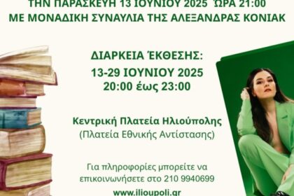 Με συναυλία της Αλεξάνδρας Κόνιακ, ξεκινάει η φετινή 22η Έκθεση Βιβλίου, που διοργανώνει ο Σύλλογος Βιβλιοπωλών της πόλης, σε συνεργασία με τον Δήμο Ηλιούπολης.Την Παρασκευή 13 Ιουνίου 2025, στις 21:0...