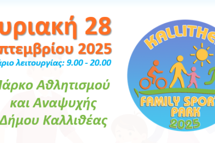 Ο Δήμος Καλλιθέας, σε συνεργασία με την Περιφέρεια Αττικής, διοργανώνει για πρώτη φορά το Kallithea Family Sports Park 2025, μια μεγάλη αθλητική γιορτή για μικρούς και μεγάλους. Η εκδήλωση θα πρα...
