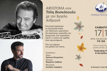Μια ξεχωριστή βραδιά αφιερωμένη στον «Πρίγκιπα» του ελληνικού τραγουδιού, Τόλη Βοσκόπουλο, διοργανώνει η Υπηρεσία Πολιτισμού του Δήμου Παλαιού Φαλήρου το Σάββατο 17 Ιανουαρίου. Στο...