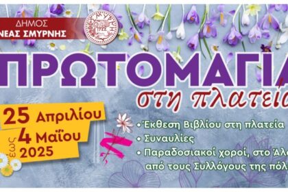 Μ’ ένα πλούσιο πρόγραμμα εκδηλώσεων υποδέχεται ο Δήμος Νέας Σμύρνης την φετινή Πρωτομαγιά. Aπό σήμερα Παρασκευή 25 Απριλίου έως και τις 4 Μαΐου θα πραγματοποιηθεί Έκθεση Βιβλίου σε συνεργασία με την Π...