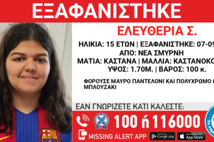 Στις 07/09/2025, μεσημεριανές ώρες, εξαφανίστηκε από χώρο φιλοξενίας στην περιοχή της Νέας Σμύρνης, η Ελευθερία Σ., 15 ετών. Το «Χαμόγελο του Παιδιού» ενημερώθηκε στις 08/09/2025, και άμεσα προχώρησε ...