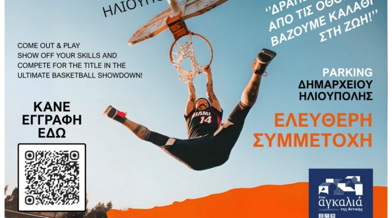 Ο Δήμος Ηλιούπολης σε συνεργασία με την Περιφέρεια Αττικής διοργανώνει για πρώτη φορά ένα μεγάλο 3×3 τουρνουά μπάσκετ, στο πάρκινγκ μπροστά από το Δημαρχείο και προσκαλεί μικρούς και μεγάλους να συμμετάσχουν δωρεάν και να στείλουν το μήνυμα «Δραπετεύουμε από τις οθόνες, Βάζουμε καλάθι στη ζωή!»